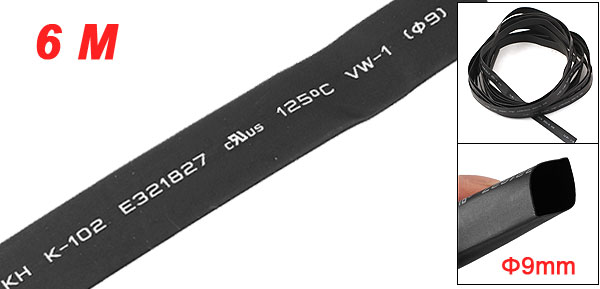 9mm Dia. Heat Shrinkable Tube Shrink Tubing Black 6M 19.7ft