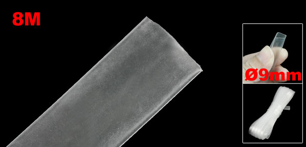 Details9mm Diameter Clear Polyolefin Heat Shrinking Tube 8M 26.2Ft  Product Name Heat Shrinkable Tube Material Polyolefin Rated Voltage 600V Temperature Level 125°C Flammability VW-1 Diameter 9mm / 0.354"(Before Shrinking) 4.5mm / 0.177"(After Shrinking) Shrink Ratio 2:1 Length (Approx.) 8M / 26.2Ft Color Clear Weight 77g Package Content 1 x Heat Shrinkable Tube