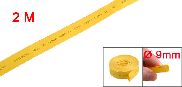9mm Diameter Ratio 2:1 Heat Shrinking Shrinkable Tube Yellow 2M Long