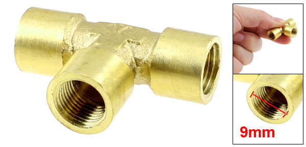 9mm Female Thread 3 Way Quick Connector Coupling Air Joint Gold Tone