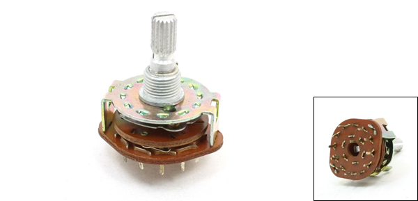 Product Name Rotary Switch Contact Type 2 Pole 6 Position(2P6T), 1 Deck Fit Mounting Hole Diameter 9mm / 0.35" Rotating Shaft Dia 6mm / 0.24" Pin Number 14 Dimensions 3 x 4cm / 1.2" x 1.6"(Max.D*H) Material Metal, Plastic Net Weight 13g Package Content 1 x Rotary Switch - Reviews