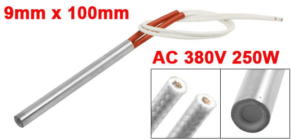 Product Name Cartridge Heater Material Stainless Steel, PVC, Nylon Rated Voltage AC 380V Power 250W Heater Size (Approx.) 9 x 100mm / 0.35" x 3.9" (D * L ) Wire Length (Approx.) 32cm / 12.6" Color Silver Tone, Red, White Weight 37g Package Content 1 x Cartridge Heater - Reviews