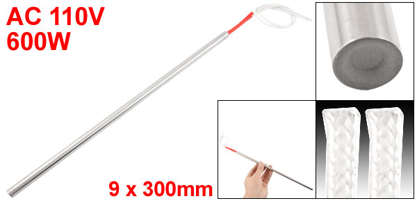 Product Name Cartridge Heater Material Stainless Steel, PVC, Nylon Rated Voltage AC 110V Power 600W Heater Size (Approx.) 9 x 300mm/ 0.35" x 11.8" (D * L)
