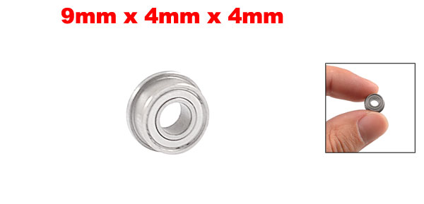 9mm x 4mm x 4mm Radial Shielded Deep Groove Flanged Ball Bearing Silver Tone