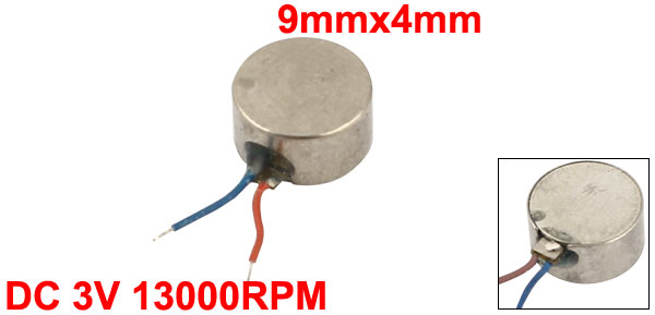 Product Name DC Vibration Motor Material Metal Rated Voltage Current DC 3V 0.63A Speed 13000RPM Size 9 x 4mm / 0.35" x 0.16"(D*H) Color Silver Tone Weight 2g Package Content 1 x DC Vibration Motor - Reviews