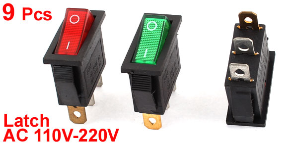 AC 125V 30ALamp Voltage AC 110V-220V Total Size(Each One) 3.1 x 1.4 x 2.8cm/1.2" x 0.55" x 1.1"(L*W*T) Mounting Size 3.2 x 1 x 2cm/1.3" x 0.4" x 0.8"(L*W*T) Color Black, Green, Red Material Plastic, Metal Total Weight 62g Package Content 4 x Green Lamp Rocker Switch