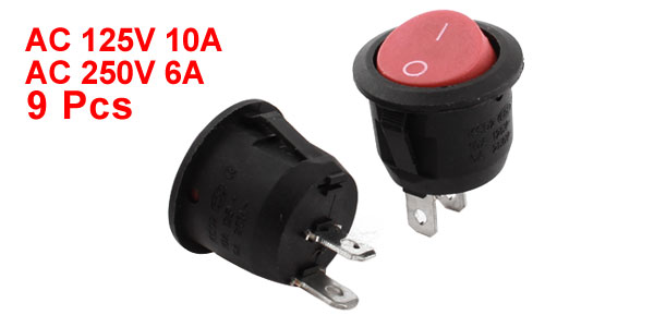 AC 250V 6AOverall Size(Not Included Pin) 22 x 23mm /0.87" x 0.91" (L*D) Mounting Dia 19mm/0.75" Color Black, Red Material Plastic, Metal Total Weight 42g Package Content 9 Pcs x Rocker Switches - Reviews
