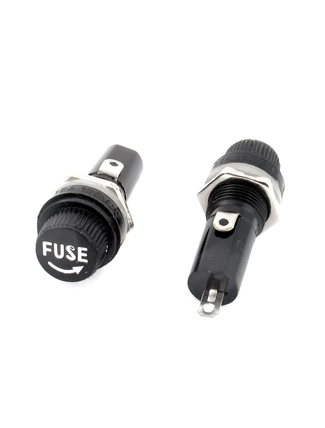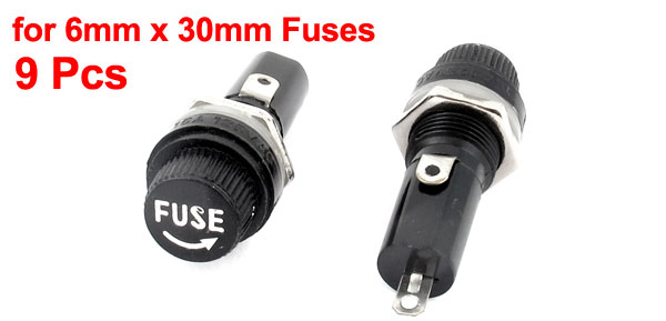 Item Name Panel Mounted Fuse Holder Fit for 6mm x 30mm Fuses Material Plastic ,Metal Rated Voltage AC125V 15A, AC 250V 10A Color Black, Silver Tone Size 180 x 40mm/ 7" x 1.6" (L*D) Thread DIa 13mm/0.5" Net Weight 86g Package Content 9 x Panel Mount Fuse Holder - Reviews