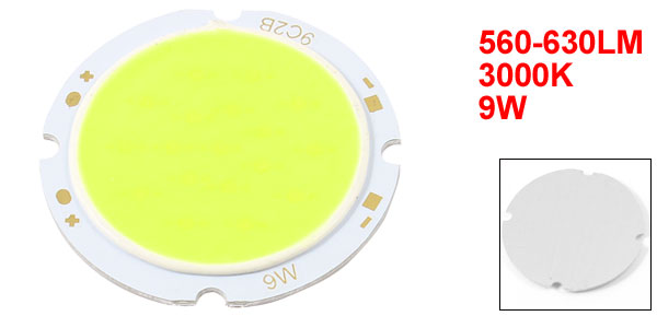 Product Name COB LED Light Rated Voltage 25-30V Luminous Flux 560-630LM Color Temperature 3000K Power 9W Work Current 700mA Material Plastic, Aluminum Total Emitters 1 Color White, Yellow Size 40 x 2mm/ 1.6" x 0.08" (L*T) Light Color White Weight 5g Package Content 1 x COB LED Light - Reviews