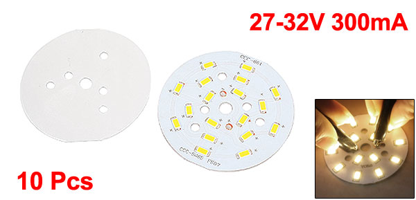 Product Name LED Aluminum Base Light Type LED LED Type SMD 5730 Light Color Warm White Light Quantity 18 Luminous 80lm/w Color Temperature 3500K Power 9W Voltage DC 27-32V Current 300mA Material Electronic Parts, Aluminum Base Diameter 65mm/2.4" Net Weight 120g Package Content 10 x LED Aluminum Base - Reviews