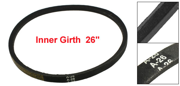 Product Name V Belt Type A-26 Top Width 13mm / 1/2" Inner Girth 660mm / 26" Height 8mm / 0.31" Main Material Rubber Color Black Weight 82g Package Content 1 x V Belt - Reviews