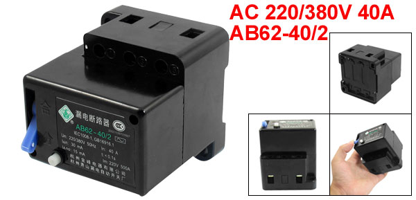 Product Name Earth Leakage Circuit Breaker Model AB62-40/2 Type 3 Phase 4 Wire Un AC 220/380V 50Hz In 40A Im 220V 500A Pole 2 Rated Operating Current for Leakage 30mA Rated not Operating Current for Leakage 15mA Leakage Points off-time <=0.1s Rated Short Circuit Current 500A Installing Hole Size 7.7 x 5.5mm/0.3" x 0.2"(L*W) Overall Size (Approx.) 73 x 75 x 80mm / 2.9" x 3" x 3.15"(L*W*H) External Material Plastic Color Black Weight 328g Package Content 1 x Earth Leakage Circuit Breaker - Reviews