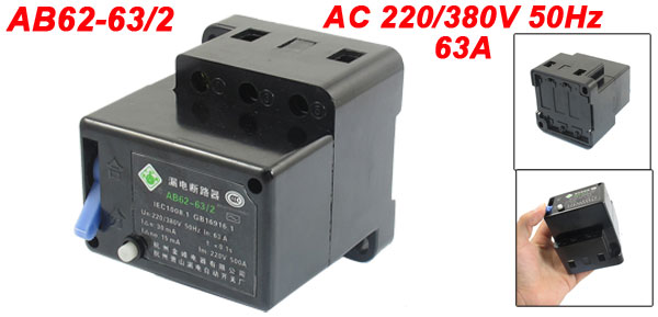 Product Name Earth Leakage Circuit Breaker Model AB62-63/2 Type 3 Phase 4 Wire Un AC 220/380V 50Hz In 63A Im 220V 500A Pole 2 Rated Operating Current for Leakage 30mA Rated not Operating Current for Leakage 15mA Leakage Points off-time <=0.1s Rated Short Circuit Current 500A Installing Hole Size 7.7 x 5.5mm/0.3" x 0.2"(L*W) Overall Size (Approx.) 73 x 75 x 80mm / 2.9" x 3" x 3.15"(L*W*H) External Material Plastic Color Black Weight 328g Package Content 1 x Earth Leakage Circuit Breaker - Reviews