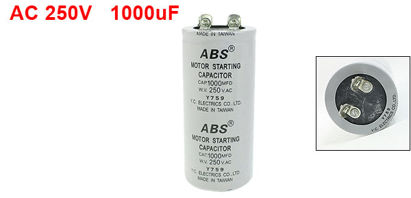 Product Name Motor Capacitor Series ABS Capacitance 1000MFD(1000uF) Working Voltage 250VAC Body Size 5 x 11cm/2" x 4.3"(D*H) Material Plastic Color Gray Net Weight 240g Package Content 1 x Motor Capacitor - Reviews