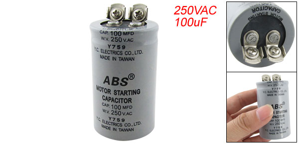 Product Name Motor Capacitor Housing Material Plastic Capacitance 100MFD(100uF) Working Voltage 250VAC Body Dimension 3.5 x 6cm/1.37" x 2.3"(D * H) Color Gray Net Weight 65g Package Content 1 x Motor Capacitor - Reviews
