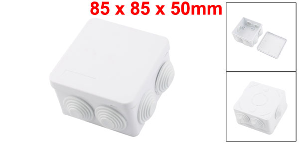Product Name Square Junction Box Total Size 85 x 85 x 50mm/ 3.3" x 3.3" x 2"(L*W*H) Internal Size 79 x 79 x 45mm/ 3.1" x 3.1" x 1.8"(L*W*H) Cable Entries Number 7 Mounted Type Surface Mounted Hole Diameter 26mm/ 1" Waterproof Rating IP55 Material ABS, Rubber Color White Net Weight 82g Package 1 x Square Junction Box - Reviews