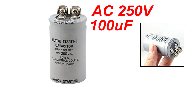 Product Name Motor Capacitor Housing Material Plastic Capacitance 100MFD(100uF) Working Voltage 250V AC Body Dimension 3.5 x 6cm/1.37" x 2.3"(D * H) Color Gray Net Weight 67g Package Content 1 x Motor Capacitor - Reviews