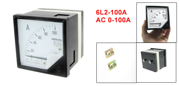 Product Name Analog Ammeter Model 6L2-100A Accuracy Class 1.5 Measuring Current Range AC 0-100A Front Face Size 80 x 80 x 10.3mm / 3.1'' x 3.1'' x 0.4'' (L*H*Depth) Base Size 75.5 x 75.5mm / 3'' x 3'' (L*H) Overall Depth 79mm / 3.1" Threaded Holes Dia. 4.6mm / 0.18'' Material Plastic Net Weight 207g Package Content 1 x Analog Ammeter