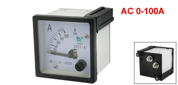 Product Name Analog Ammeter Model 99T1 Measuring Current Range AC 0-100A Accuracy Class 2.5 Current Transformer Type 100/5A Thread Dia 4mm/0.16" Panel Size 48 x 48 x 5.5mm/1.9" x 1.9" x 0.22"(L*W*T) Total Height 54mm/2.2" Color Clear, Black Net Weight 57g Total Weight 69g Package Content 1 x Analog Ammeter