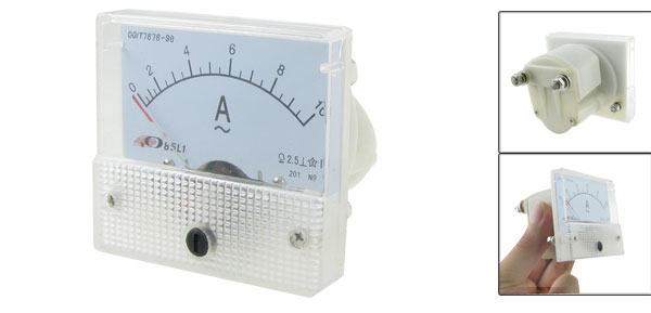 Product Name AC Analog Ammeter Model 85L1-A Accuracy Class 1.5 Measuring Current Range AC 0-10A Front Face Size 64 x 56 x 10mm / 2.5'' x 2.2'' x 0.4'' (L*H*Depth) Base Size(Not Included Screw) 36 x 49 x 33mm / 1.4'' x 1.9'' x 1.3'' (L*H*Depth) Overall Depth 58mm / 2.3" Thread Dia. 4mm / 0.154''; 2.8mm / 0.110" Material Plastic Net Weight 96g Package Content 1 x AC Analog Ammeter - Reviews