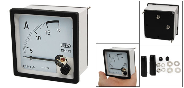 AC Current Panel Meter Model No. DH72 Scale Range AC 0-15A Accuracy Class 1.5 Back Screw Diameter 2mm/ 0.07" & 5mm/ 0.19" Panel Size 7.2 x 7.2 x 0.5cm/ 2.8" x 2.8" x 0.2" (L*W*T) Overall Depth 5.7cm/ 2.2" Color White, Black Main Material Plastic, Metal Net Weight 100g Package 1 x AC Voltage Panel Meter Installation kits - Reviews