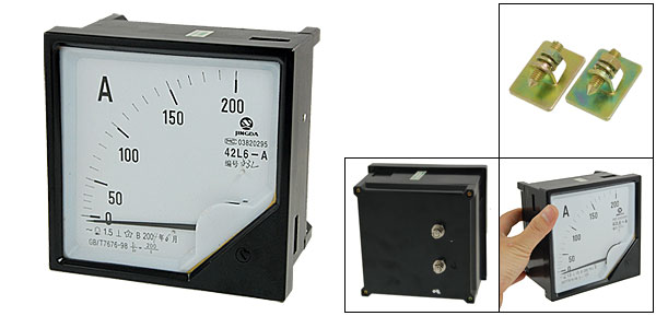 Product Name Analog Ammeter Model 42L6 Measuring Current Range AC 0-200A Accuracy Class 1.5 Working Temperature -20-+50°C Relative Humidity <=96% Meter Face Size(Approx.) 11.8 x 11.8 x 7.7cm/ 4.6" x 4.6" x 3"(L*W*T) Screw Size 0.4 x 1cm / 0.16" x 0.4"(D*L) Base Diameter 10.4cm/ 4.1" Screw Spacing 3.5cm/ 1.377" Main Color Black Net Weight 406g Package Content 1 x Analog Ammeter 1 Pair x Screws - Reviews