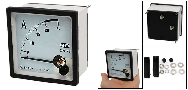 AC Current Panel Meter Model No. DH72 Scale Range AC 0-20A Accuracy Class 1.5 Back Screw Diameter 2mm/ 0.07" & 5mm/ 0.19" Panel Size 7.2 x 7.2 x 0.5cm/ 2.8" x 2.8" x 0.2" (L*W*T) Overall Depth 5.7cm/ 2.2" Color White, Black Main Material Plastic, Metal Net Weight 100g Package 1 x AC Voltage Panel Meter Installation kits - Reviews