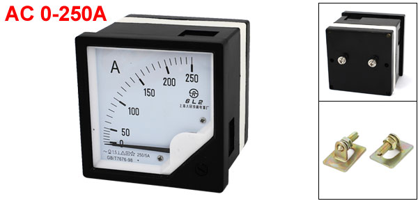 Thread Dia 5mm / 0.2" Panel Size 8 x 8cm / 3" x 3" (L*W) Main Color White, Black, Clear Brand DMiotech Net Weight 158g Country of Manufacture CHINA Model 6L2 Package Content 1 x Analog Ammeter Measuring Range AC 0-250A Material Plastic, Metal Accuracy Class 1.5 Total Depth 7.2cm / 2.8" - Reviews