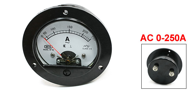 Product Name Analog Amperemeter Model BP-65 Measuring Ampere Range AC 0-250A Accuracy Class 2.5 Panel Face Dia. 82mm/ 3.2" Mounting Thread Hole Diameter 4mm/0.16" Total Depth 43mm/ 1.7" Color White, Black Weight 103g Package Content 1 x Analog Amperemeter