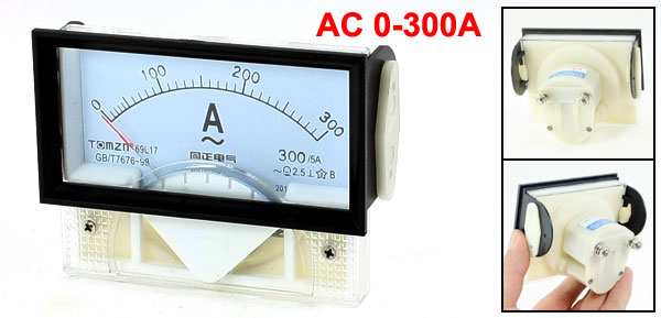 Product Name Analog Ammeter Measuring Current Range AC 0-300A Accuracy Class 2.5 I1/I2 300/5A Total Size 8.5 x 6.7 x 5.1cm / 3.3" x 2.6" x 2" (L*W*T) Screw Thread Diameter 4mm / 0.16"