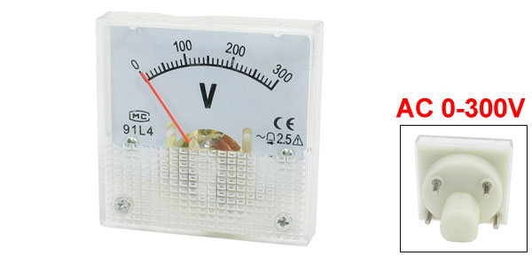Product Name Analog Voltmeter Model 91L4 Measuring Voltage Range AC 0-300V Accuracy Class 2.5 Meter Face Size 45 x 45 x 9mm / 1.8" x 1.8" x 0.35"(L*W*T) Screw Thread Diameter 3mm/ 0.12"