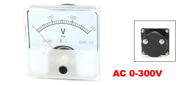 Product Name Analog Voltmeter Measuring Current Range AC 0-300V Accuracy Class 2.5 Meter Face Size(Approx) 6.1 x 6.1cm / 2.4" x 2.4" (L*W) Screw Thread Diameter 4mm / 0.16"