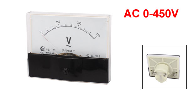 Main Color White, Black, Clear Brand DMiotech Meter Face Size(Approx) 10 x 8cm / 3.9" x 3.1"(L*W) Country of Manufacture CHINA Model 44L1-V Material Plastic,Metal Accuracy Class 1.5 Measuring Ampere Range AC 0-450V Net Weight 129g Package Content 1 x Analog Voltmeter Overall Depth 4.9cm /1.9" Mounted Hole Size 3.2 x 2.5cm/1.2" x 1"(L*W) Thread Size 0.4 x 0.9cm / 0.16" x 0.35"(D*L) - Reviews