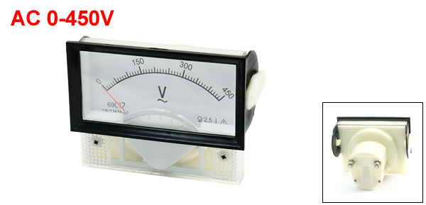 Product Name Analog Voltmeter Model 69L17 Measuring Voltmeter Range AC 0-450V Accuracy Class 2.5 Meter Face Size(Approx) 8.5 x 6.5cm / 2.7" x 2.4"(L*W*T) Thread Size 0.4 x 0.9cm / 0.16" x 0.35"(D*L)