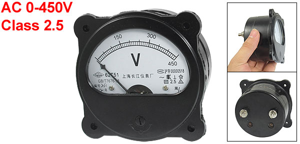 Product Name Analog Voltmeter Model 62T51-A Measuring Voltage Range AC 0-450V Accuracy Class 2.5 Meter Face Size(Approx) 85 x 85 x 6mm / 3.3" x 3.3" x 0.24"(L*W*T) Screw Thread Diameter 4.8mm/0.2"