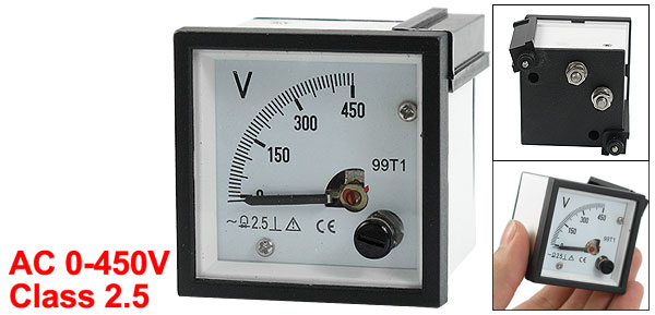Product Name Analog Voltmeter Model 99T1-450V Measuring Voltage Range AC 0-450V Accuracy Class 2.5 Meter Face Size(Approx) 48 x 48mm / 1.9" x 1.9"(L*W) Screw Thread Diameter 4mm/0.16"