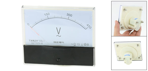 Product Name Analog Voltmeter Measuring Voltage Range AC 0-450V Accuracy Class 1.5 Meter Face Size(Approx) 12 x 10cm / 4.7" x 3.9"(L*W) Screw Thread Diameter 4mm/0.16"