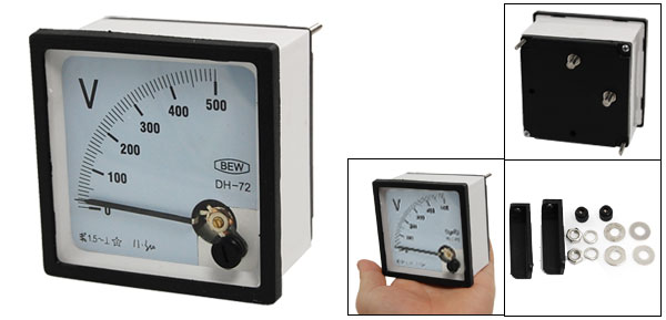 AC Voltage Panel Meter Model No. DH72 Scale Range AC 0~500V Accuracy Class 1.5 Back Screw Diameter 2mm/ 0.07" & 5mm/ 0.19" Panel Size 7.2 x 7.2 x 0.5cm/ 2.8" x 2.8" x 0.2" (L*W*T) Overall Depth 5.7cm/ 2.2" Color White & Black Main Material Plastic, Metal Net Weight 120g Package 1 x AC Voltage Panel Meter Installation kits - Reviews