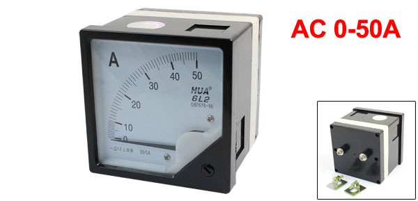 Product Name Analog Ammeter Model 6L2 Accuracy Class 1.5 Measuring Current Range AC 0-50A Front Face Size 80 x 80 x 10mm / 3.1" x 3.1" x 0.4" (L*H*Depth) Base Size 75 x 63mm / 3" x 2.5"(L*H) Overall Depth 72mm / 2.8" Material Plastic Weight 219g Package Content 1 x Analog Ammeter