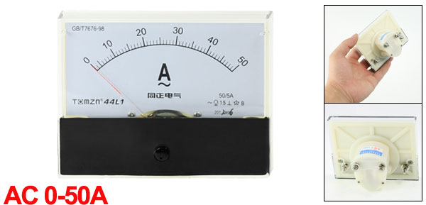 Product Name Analog Ammeter Measuring Current Range AC 0-50A Accuracy Class 1.5 I1/I2 50/5A Meter Face Size(Approx) 10 x 8cm / 3.9" x 3.1" (L*W) Screw Thread Diameter 4mm / 0.16"