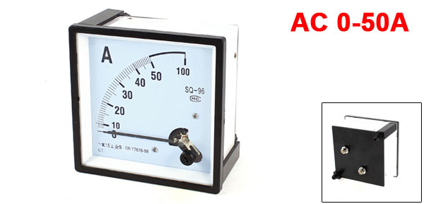 Product Name AC Analog Ammeter Type SQ96 Measuring Range AC 0-50A Accuracy 1.5 Mounting Type Vertical Operating Situation -20 to +50C Current Transformer 50/5A Thread Dia. 5mm/0.2" Dial Size 96 x 96 x 50mm/3.8" x 3.8" x 2.0"(L*W*T) Total Size 96 x 96 x 66mm/3.8" x 3.8" x 2.6"(L*W*T) Material Plastic, Electronic Parts Weight 112g Package Conten 1 x AC Analog Ammeter - Reviews