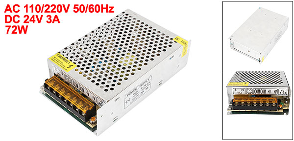 Product Name Switching Power Supply Input AC 110/220V 50/60Hz Output DC 24V, 3A Power 72W Overall Size 16 x 9.7 x 4.2cm / 6.3" x 3.8" x 1.7" (L*W*T) Case Material Metal, Aluminum Case Color Silver Tone Net Weight 360g Package Content 1 x Switching Power Supply - Reviews