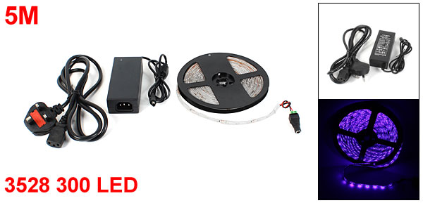 AC 100-240V UK Plug to DC 12V 5A 60W Waterproof 3528 Blue 300 LED Light Strip
