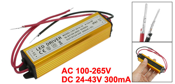 Product Name (8-12)x1W LED Driver Power Supply Model IP67 Input AC 100-265V 50/60Hz Output DC 24-43V 300mA ± 5% (8-12)x1W Material Metal, Plastic, Electronic Parts Size 11 x 2.3 x 2cm / 4.3" x 0.9" x 0.8" (L*W*H) Wire Length 14cm / 5.5"