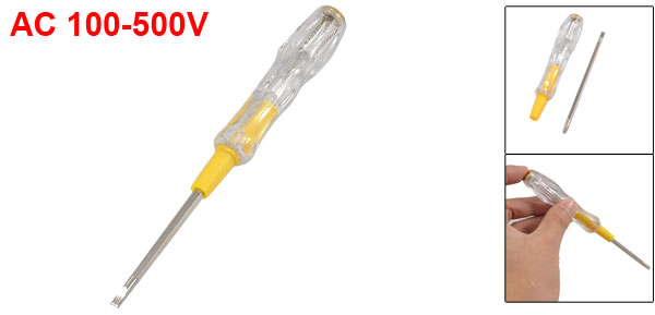 Product Name Voltage Detector Tester Material Plastic, Metal Voltage AC 100-500V Tip Size (Approx.) 3.5mm/0.14" Shank Length 53mm/2.1" Handle Size 81 x 19mm/3.2" x 0.7"(L*D) Total Length 153mm/6" Handle Color Clear Net Weight 23g Package Content 1 x Voltage Detector Tester - Reviews
