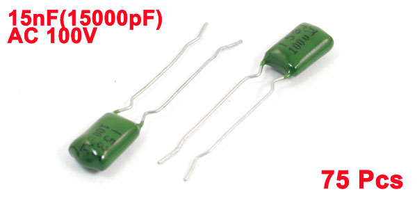AC 100V 15nF 15000pF Through Tole Polyester Film Capacitors 75 Pcs