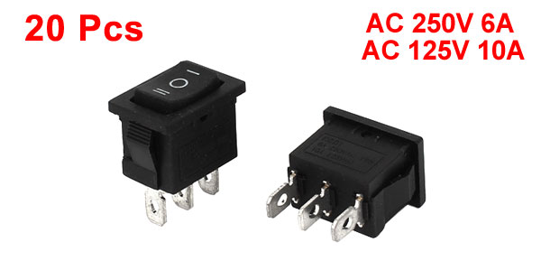 Main Color Black Product Name Rocker Switch Net Weight 83g Rated AC 250V 6A AC 125V 10A Country of Manufacture CHINA Model KCD1 Mounting Size 22 x 12 x 22mm /0.9 x 0.5 x 0.9inch(L*W*T) Package Content 20 x Rocker Switch Material Plastic, Metal Total Size 22 x 15 x 27mm /0.9 x 0.6 x 1.1inch(L*W*T) - Reviews