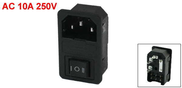 AC 10A 250V 3 Pins IEC320 C14 Inlet Male Power Plug w 6-Pin Switch