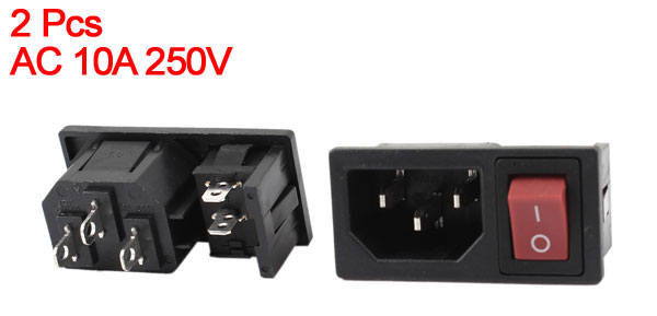 AC 10A 250V ON/OFF Red Button Rocker Switch IEC320 C14 Inlet Power Socket 2 Pcs