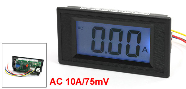 AC 10A/75mV 7 Segments Blue LCD Display Current Tester Panel Ammeter